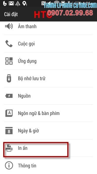 Bước 1: Trên điện thoại vào Cài đặt -> In ấn -> Bật